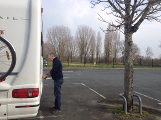 The day has become sunny and we’ve stopped at a free Aire next to the Municipal campsite at Saintes (half way down France).This is our stop for the night. Perfectly decent, free and currently just one Irish motorhome for a neighbour.