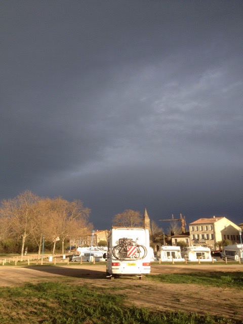 We stayed at the Lautrec Aire last night which we used last October. It’s a superb aire, and free! Really spacious! Forgot to take a photo of us in-situ, but basically we parked up far left corner. Nice view of Lautrec from our window.