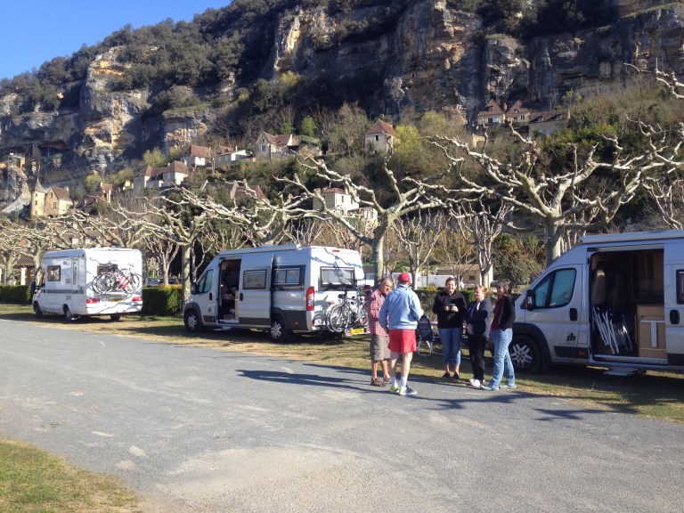 Michael worked in the afternoon and I read and pottered. Later we set off for the Dordogne and joined our friends at the 7 Euros per night Roque Gageac Aire, and a very pleasant spot it is.