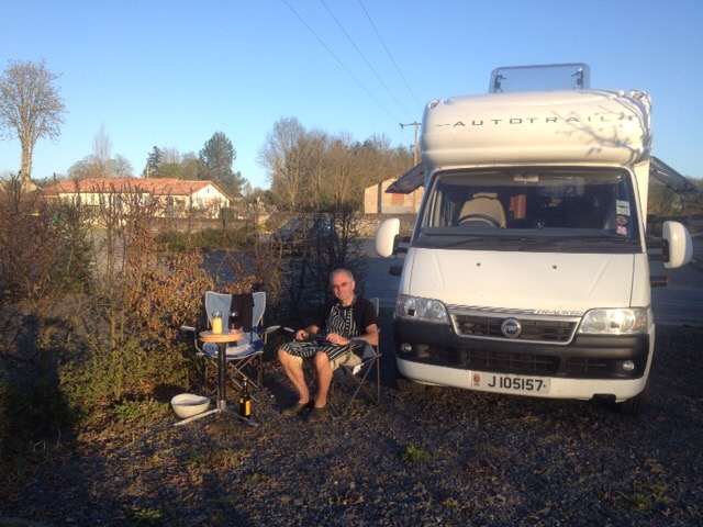 Sitting outside his ‘van’ having had a nice al-fresco supper with a glass of wine and the rest of the evening to enjoy the peace and quiet and latterly the starry sky!