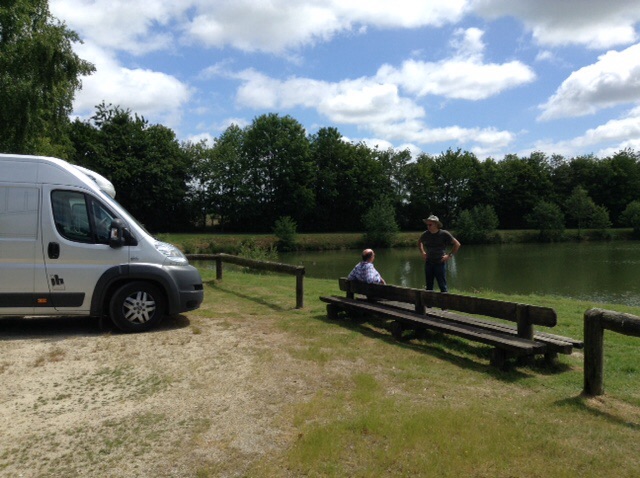 What a perfect day for weather! Sun shining, we parked up both vans by the village plan d’eau (little lake basically) – man made, and particularly in this case in Langourla, very pretty indeed, and somewhere we walked regularly when we owned the cottage.