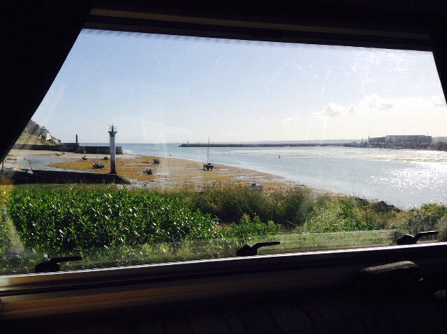 We were here last night, Michael has worked all today, in beautiful sunshine with a seascape backdrop, and I suspect (no least being in a prime spot!), we shall spend a second night here! This morning, when various vans moved on, we seized the opportunity to move our van to its current prime location! Front row with only one neighbour! – and full benefit of the sea view! This has been a great little find!