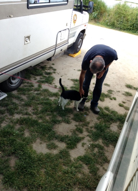 We got chatting with our French neighbours having been fascinated by their cat Eliot who travels always with them.