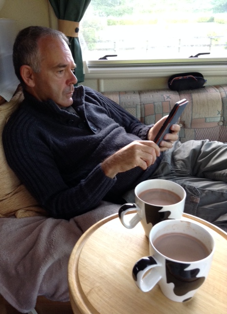 Supper was ‘light’. Fried onions, baked beans and curry powder combined (very delicious!), followed by drop scones, Breton made vanilla ice-cream (Michael bought at Super U), and a generous pouring of real maple syrup. Very delish!!! Hot chocolate to finish!