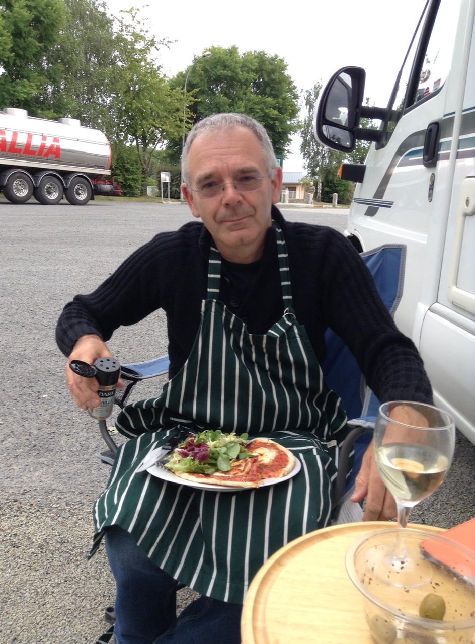 ‘Aldi’ pizza supper, plenty of ‘Kindle’ reading time for Michael, and blogging for me! – both sat outside and it’s well gone 9pm.