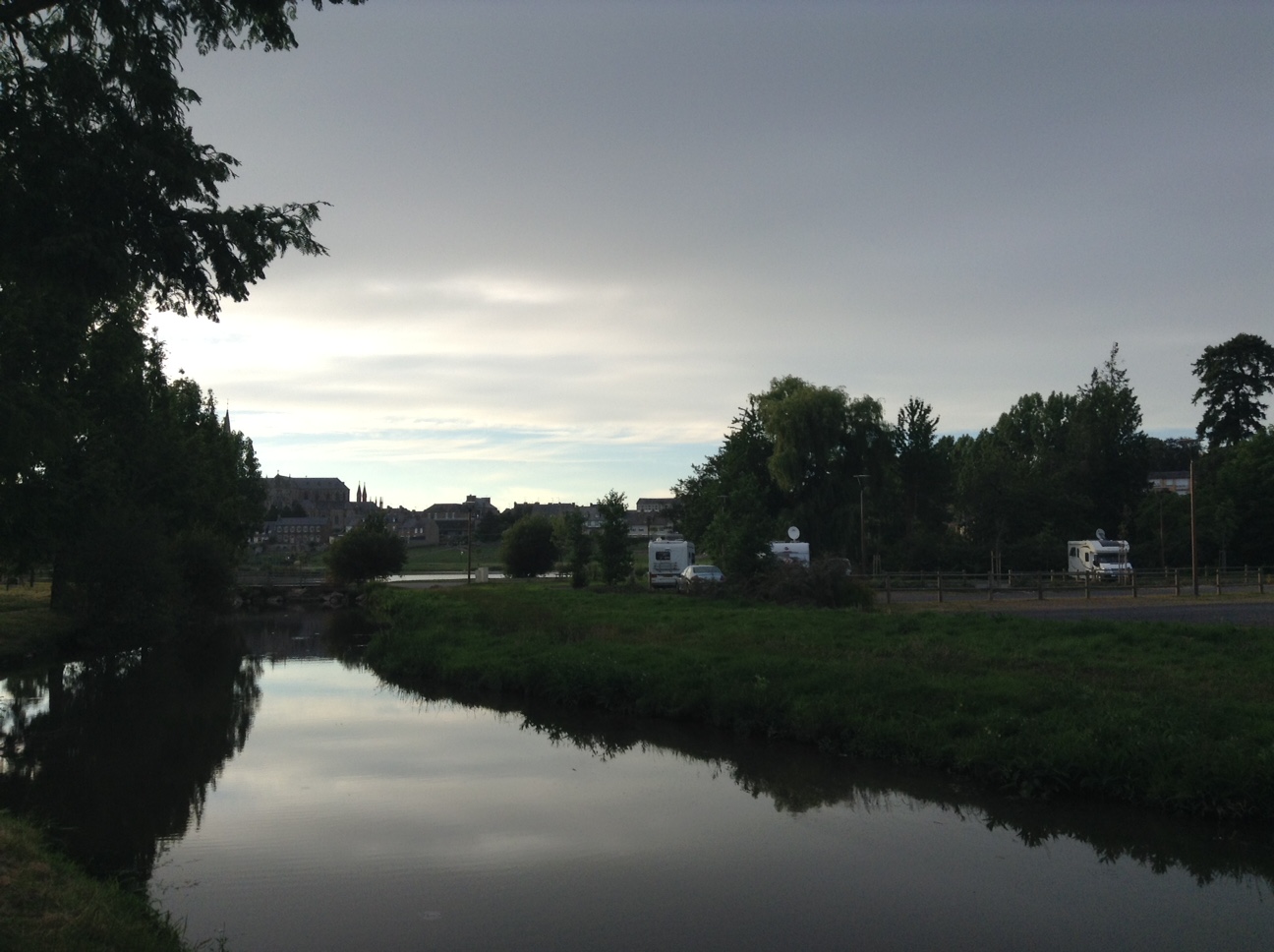 motorhome parking around the church/cathedral. We lunched here, but have since moved to the more scenic plan d’eau, lakeside car park, along with a few other motorhomers.