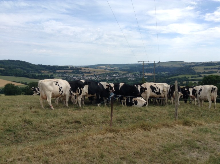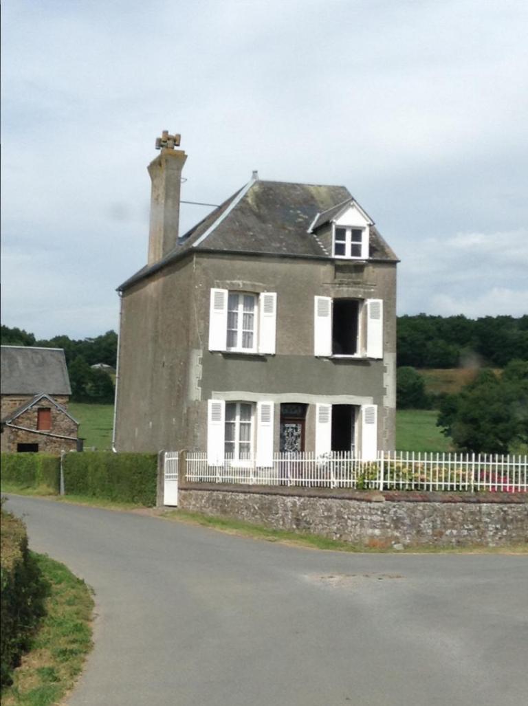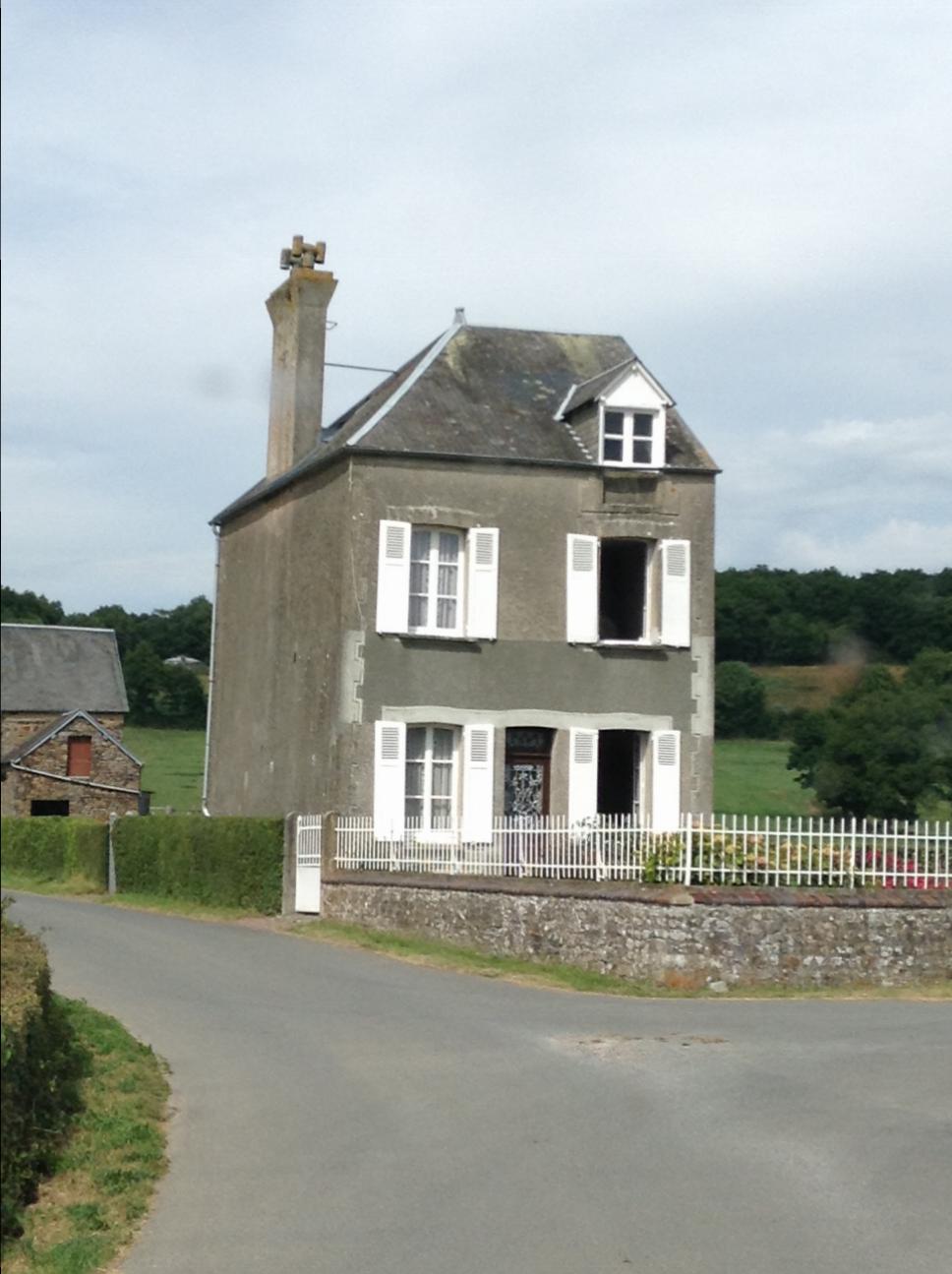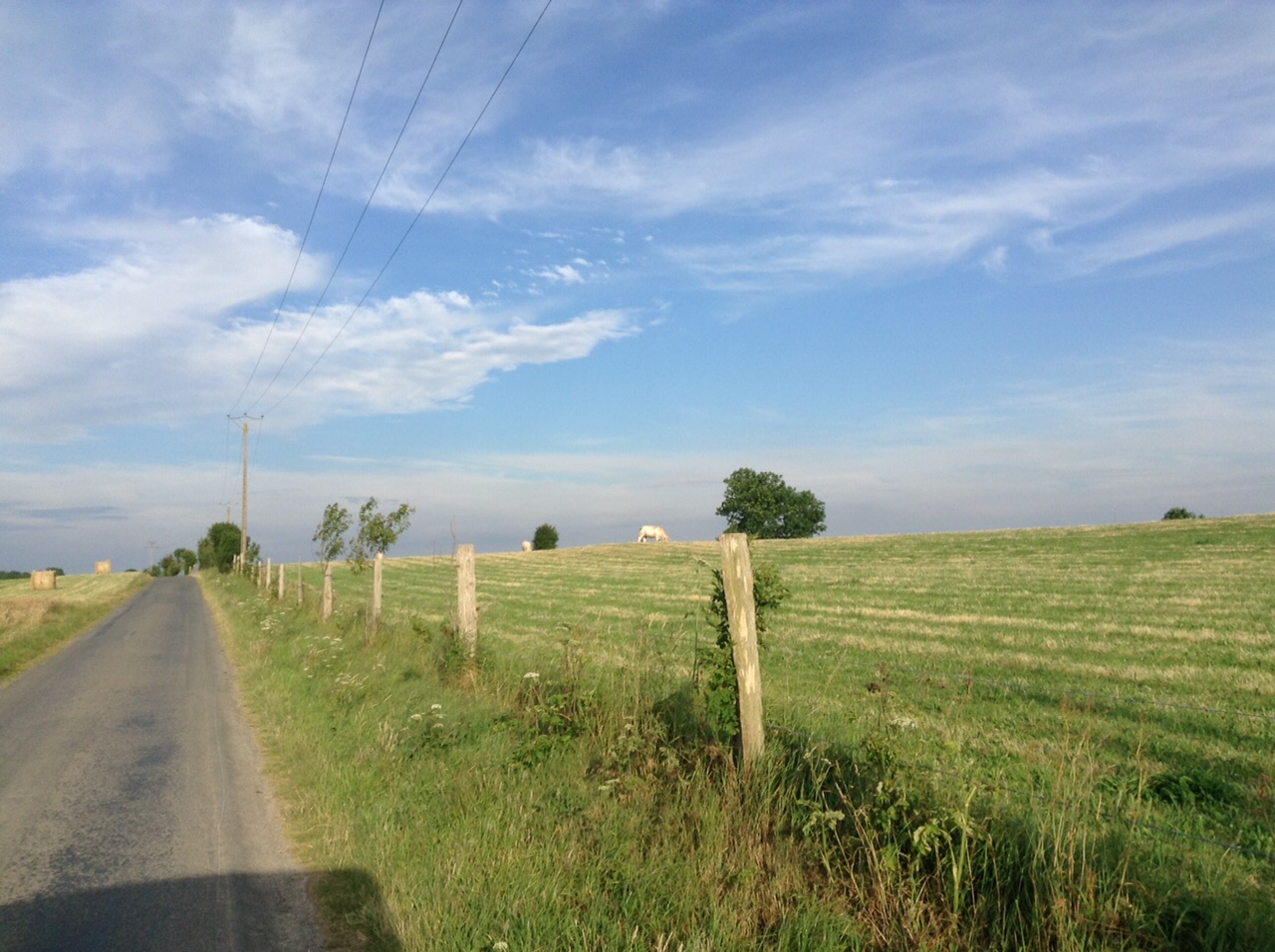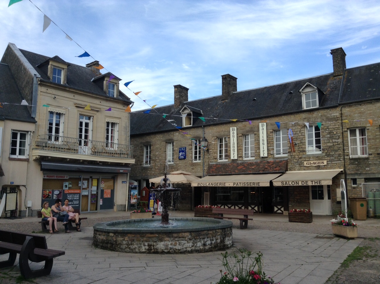 After driving through more picturesque scenery, and having no success staying at the Aire in Clecy what with the travelling fayre in town, we travelled on and decided to stop here in the church car park at Pierrepont for a convenient wild camp!