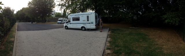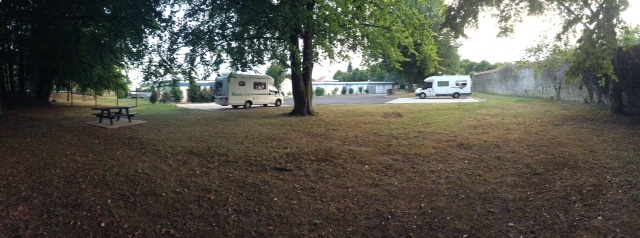 At our night stop here (Villers Cotteret) we had one neighbour only – a free stay, and slept very well. There’s the municipal swimming pool next door for anyone who wants a dip or a shower!