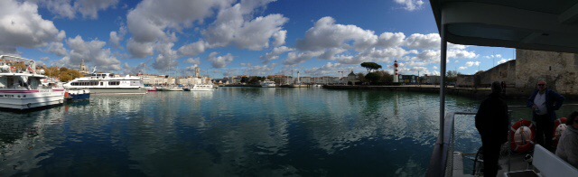 We’re a week on and we’ve not had a meal out yet, so today is looking to be it! Last night, unable to park in the La Rochelle aire we had in mind by the town centre, we found our way down to the port and marvellously have racked up (though spaciously so), with tens of other motorhomes, overlooking the marina with the landmark La Rochelle old port in the distance.
