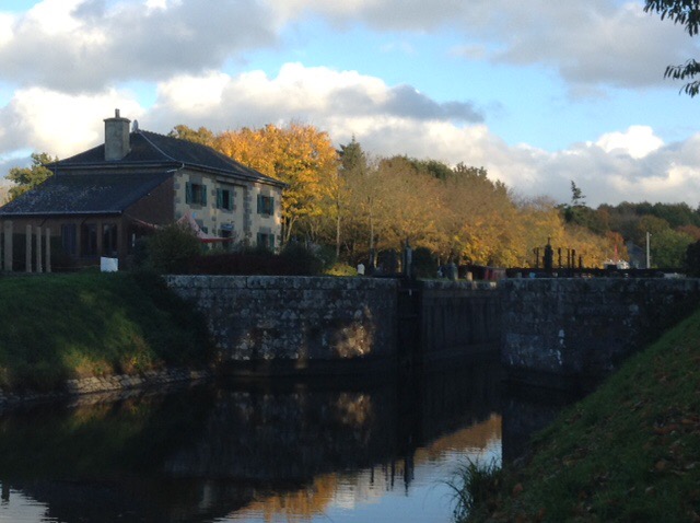 So having lunched on board at Pont Rean we headed on, driving through Rennes on this occasion, stopping too at the free motorhome aire we’ve used before now by the pretty canal spot near Hedé, and then on to Combourg, somewhere new to Nick and Sal.