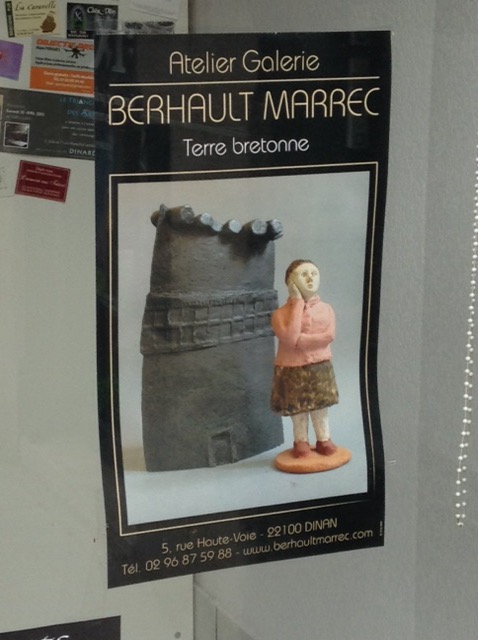 We took a stroll up to Dinan from the Aire, & called in at the Tourism office and then walking along the road spotted a poster for the Berhault Marrec gallery which is in Dinan. Monsieur and Madame Marrec (both potters), had owned La Carrée before us (a pretty country cottage we had for 7 years).