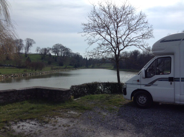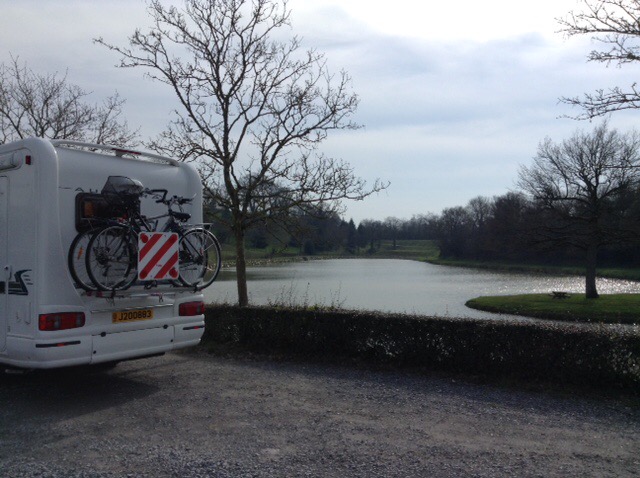 It’s always a good feeling to drive off the boat, and once through customs, hit the road! We had thought we’d just drive to Evran, 45 mins away, but feeling bright and breezy, chose to head further on our journey, and drove 2 hours from St Malo where we overnighted at the aire in Changé, (a bit short of Le Mans to give you an idea of our direction). We had no idea what our environment looked like as we’d arrived in the dark. Had a spritz to kick start our trip!