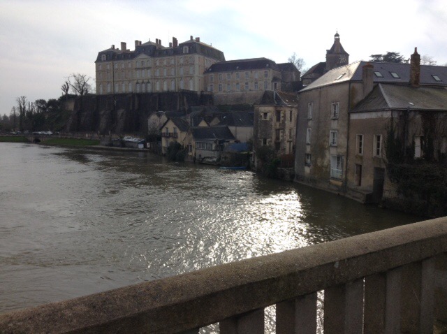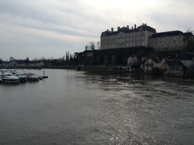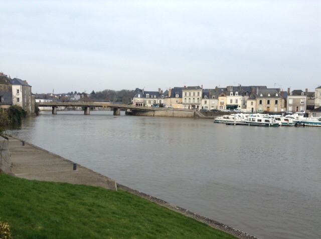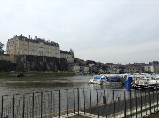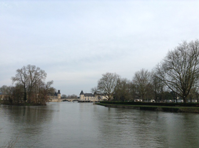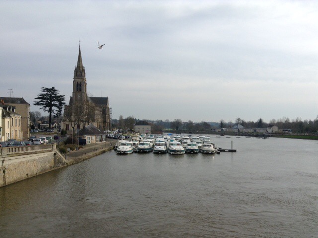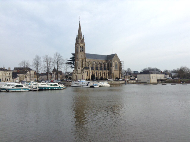 The chateau wasn’t visitable and looked shut up, but we walked around its perimeter as best we could, taking in the view down across the port and river over towards where we had parked up. Oh, and how could I forget to mention, we stopped to buy our first almond croissant of the year! – just the one, to share, as my weight needs to go back down! – drove as far as La Flèche to eat it, parked up, overlooking the river – and boy, was it delicious!!!!