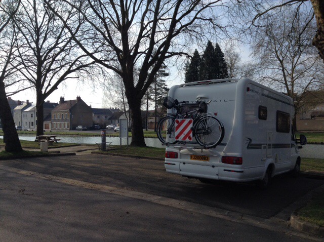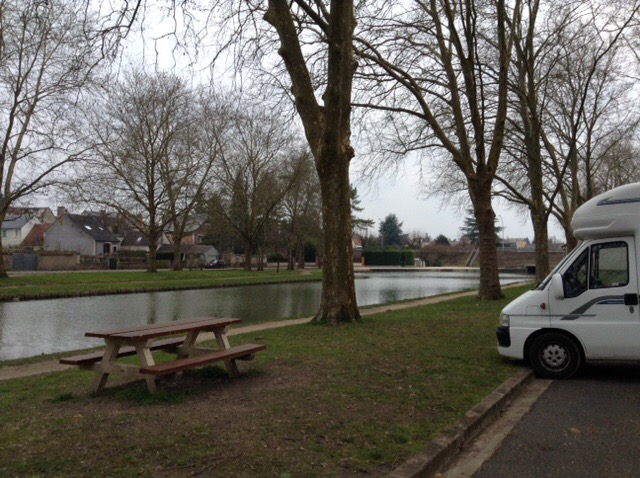 Last night we stayed at the canal side free aire in Mehun-sur-Yèvre. We thought we had a neighbour, but it turned out, come morning, it was just an empty camper parked up.