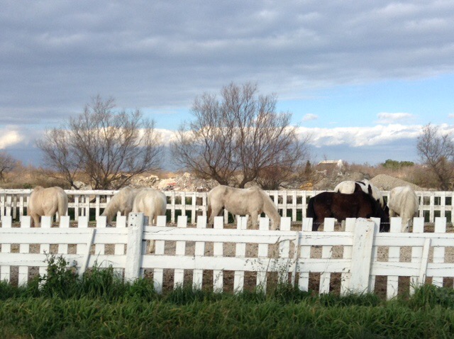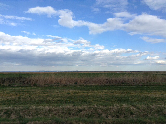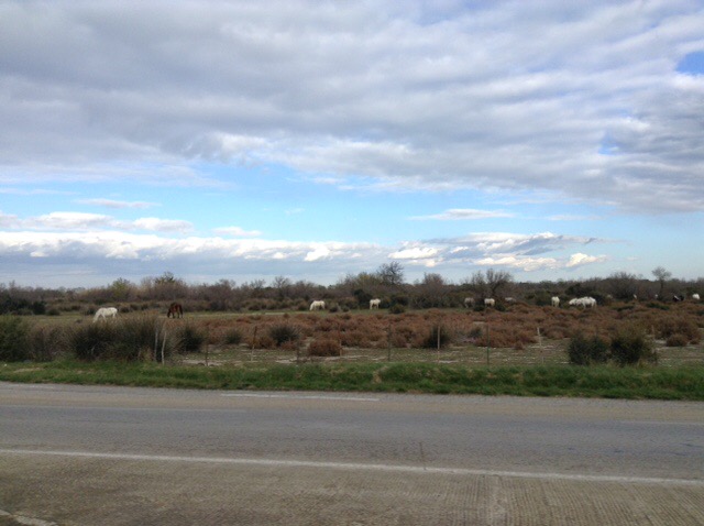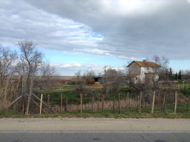 En route to La Camargue – lovely open scenery all the way! Beautiful big skies! Old farms and vineyards!