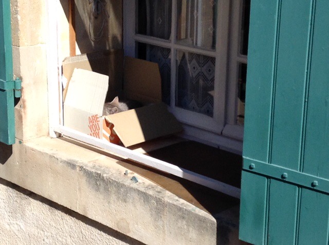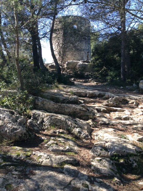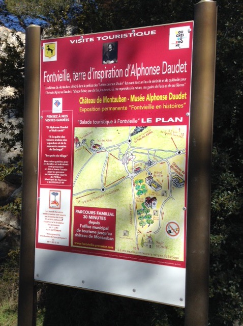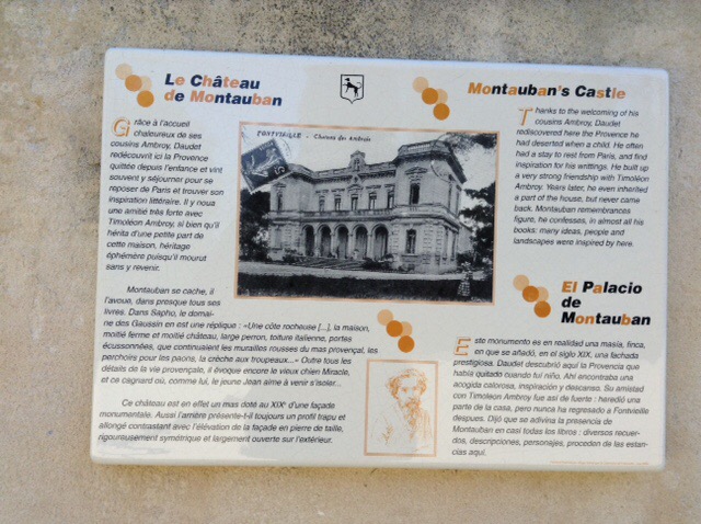 We walked up a stony path from the aire, just moments really, to see the charming old windmill on our way into the town, and en-route along this pleasant country walk, stopped to look at the Chateau de Montauban.