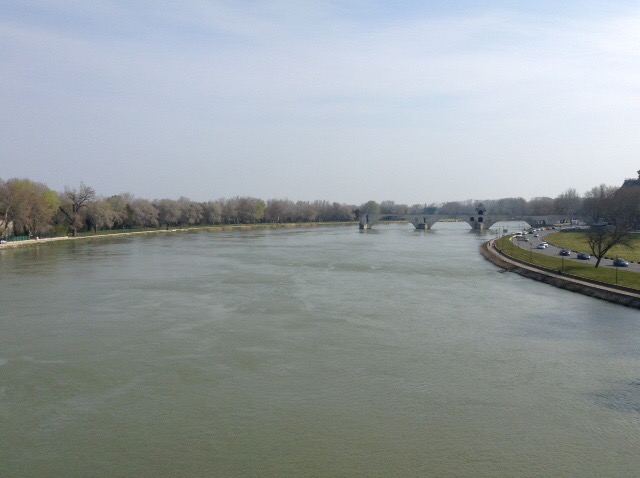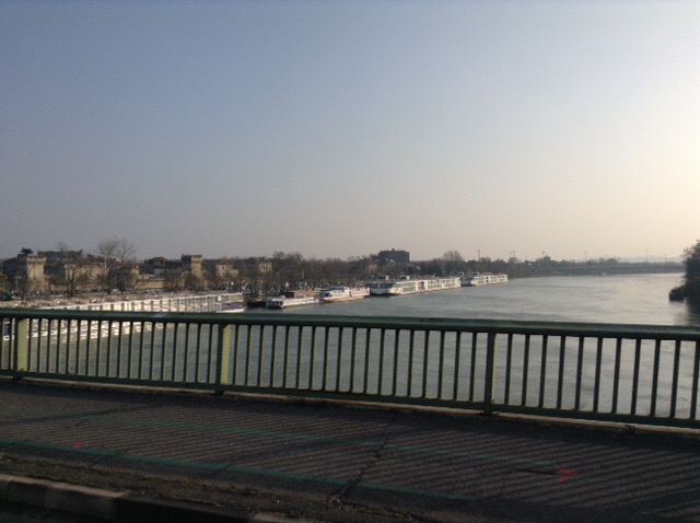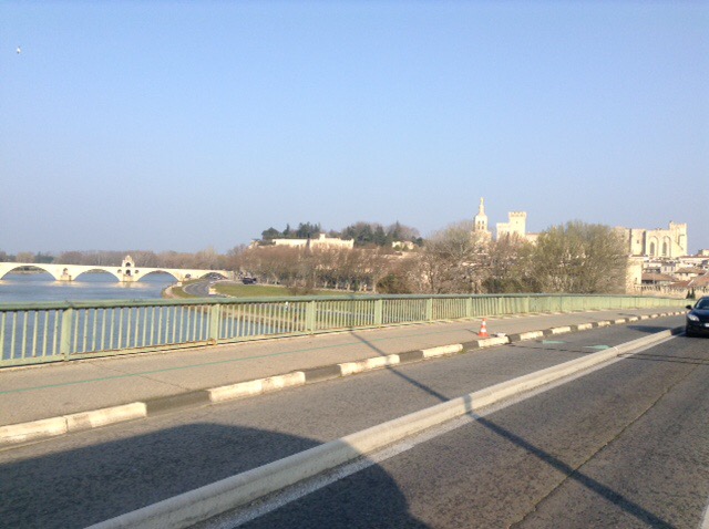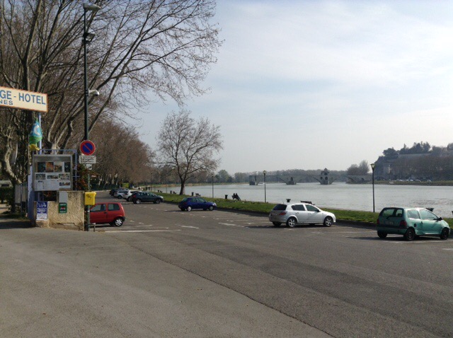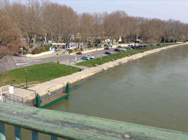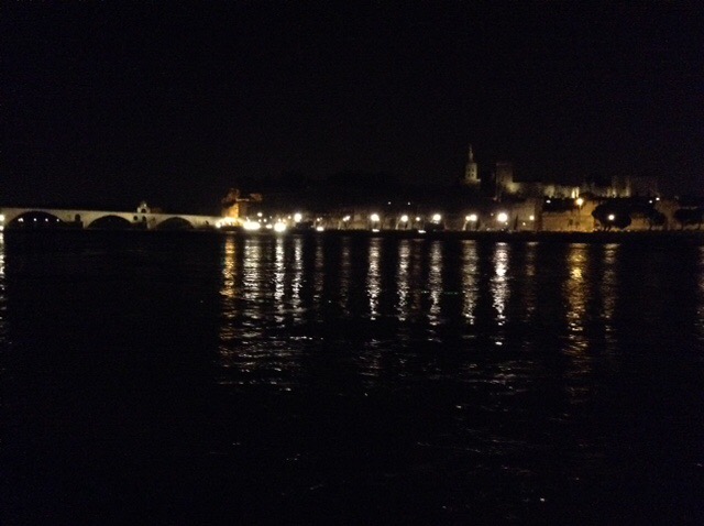 We couldn’t find the supposed aire at Avignon after a good bit of driving around, and so decided to spend the night at the nearest campsite across the river from the old walled city.