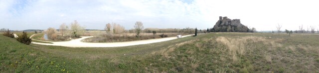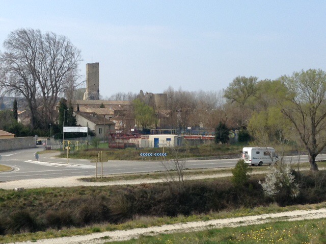 Whilst approaching the village of Roquemaure I spotted (as is my way!) a chateau (in another direction), and as also happens here and there, I asked Michael to drive us closer to it for a photo. Only problem was it turned out to be across the river and contrary to my hopes, as we got closer it ‘shrank down’ behind the riverbank!