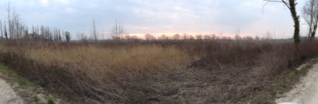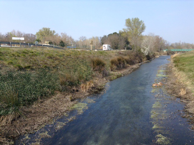 Conveniently though I was able to cross a footbridge which took me over a small watercourse and up onto the near bank with view across to the far bank and the chateau.