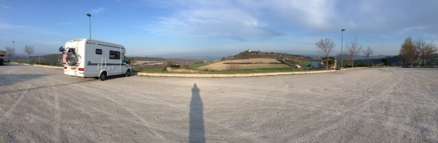 This stop was extremely scenic with a large panorama ahead of us, with quaint windmill to top it off, and the whole car park to ourselves. There were no motorhome facilities there, but the guidebook had pre-warned us of that, so of course not a problem.