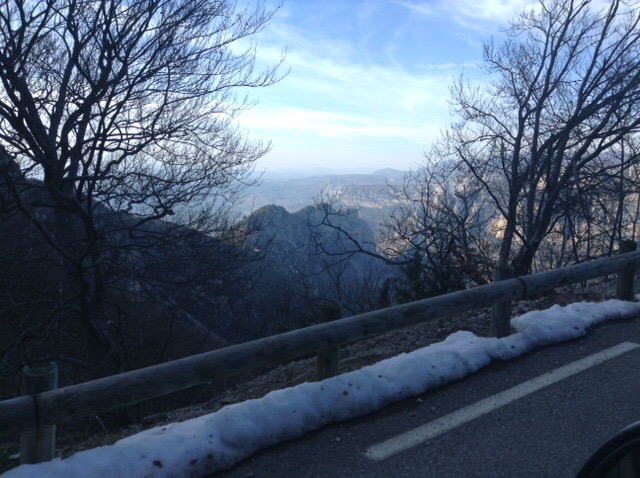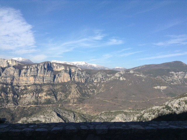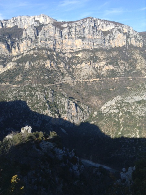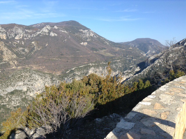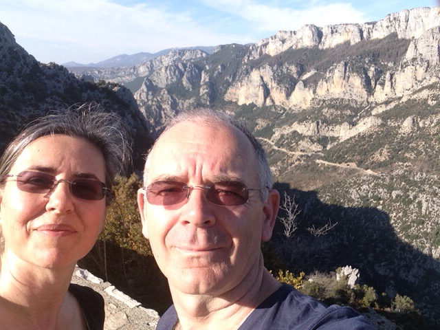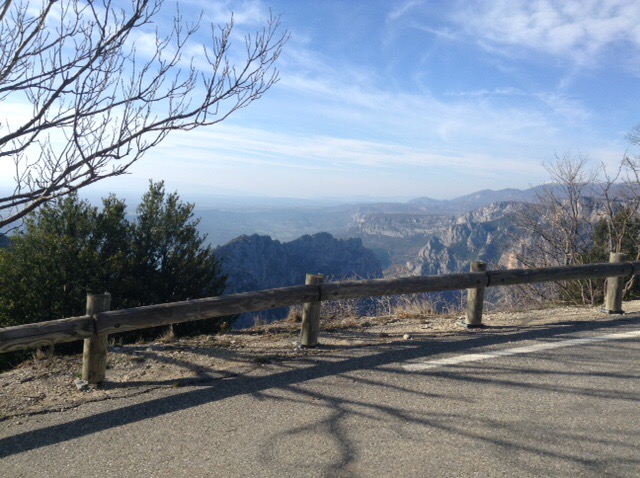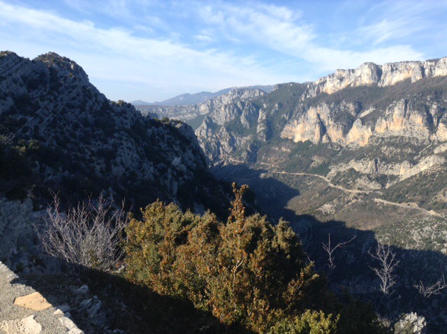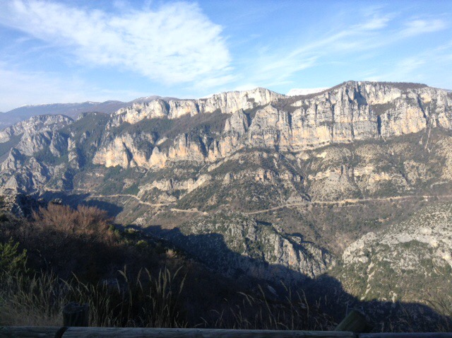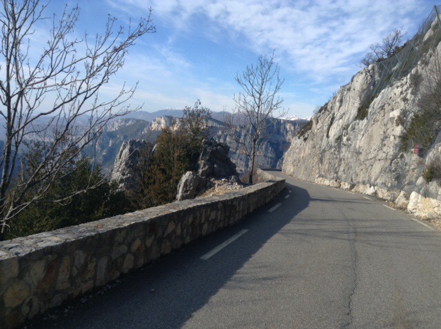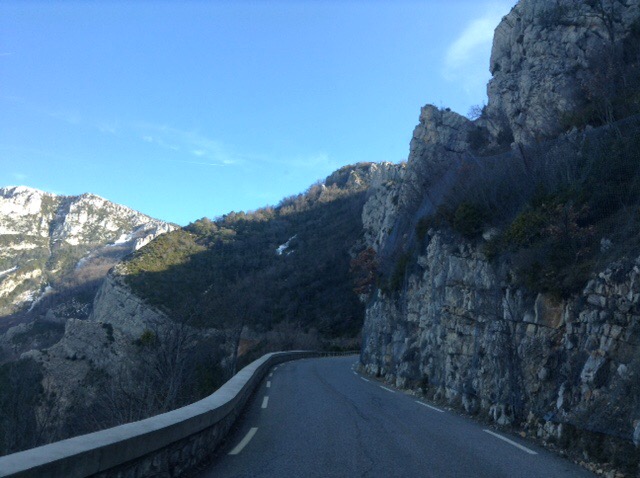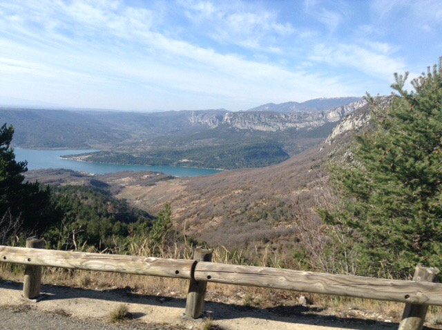 The road was reassuringly well equipped with crash barriers and stone walls too giving instant confidence! The width of the road was also heartening, with no shortage of passing places, which was just as well as we passed a coach! – and amazingly the very same bronzey gold German tour coach that pulled up next to us at our scenic lunch spot outside Roussillion, with ‘SCHMIDT’ emblazoned down the whole side. We recognised the driver! – as well as the distinct coach!