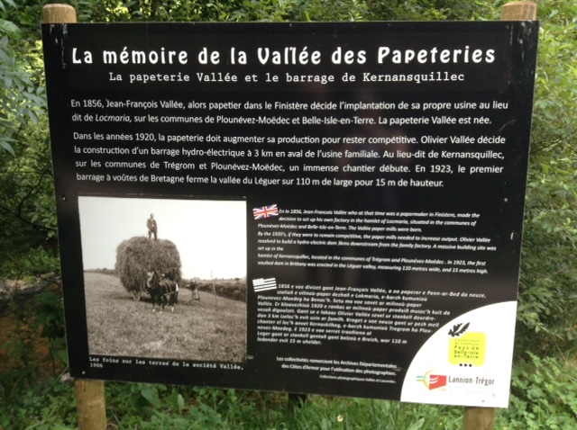We enjoyed a lovely rural drive through the ‘Vallee des Papeteries’, the old paper making industry route in the Léguer Valley, stopping off at the ruins of an old factory and latterly the remnants of a disassembled barrage which had been the location of another paper making factory.