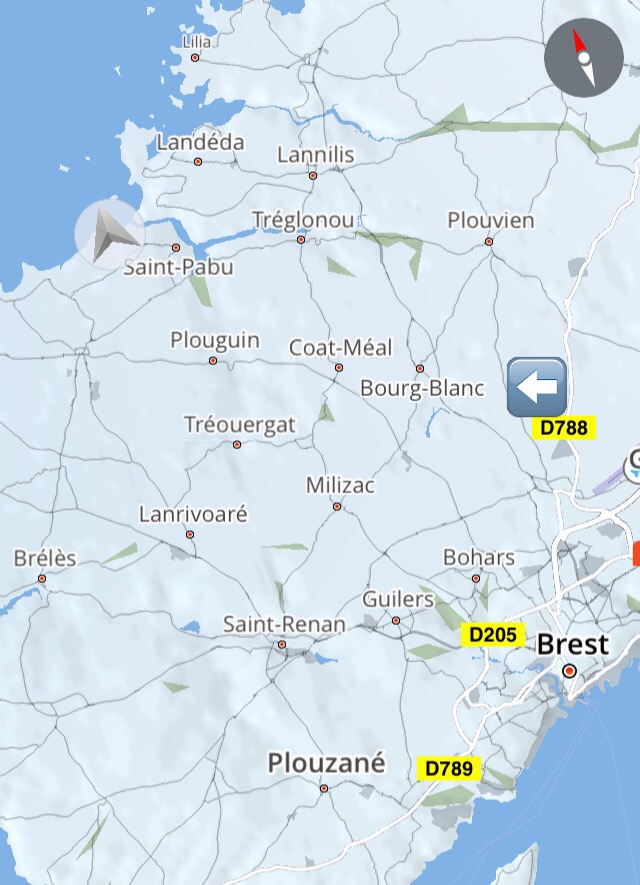 After our night and in turn day spent at the lovely panoramic spot at Trémazan we were needing to use services, so we drove to the nearest free aire at Bourg Blanc, the weather now having changed and become very dull and dismal and drizzly.