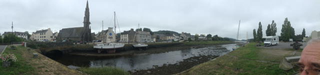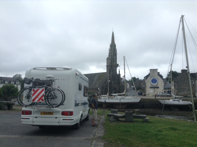 We stopped for a short while at the water side village of L’Hopital-Camfrout with its free aire. The sun wasn’t shining, but not hard to see how pretty in the sun it would have been.