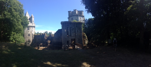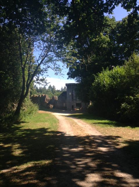 This trip it just so worked out to finally get there, and using our roaming Internet to check on opening times and tariff, we achieved a visit, paid for our ticket at the gatehouse, and walked the very pleasant 10 minutes along a leafy shaded track (most welcome in the heat!) to the superb, privately owned castle ruin.
