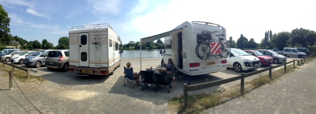 On to Saint Aubin du Cormier for a BBQ sausage lunch. Saint Aubin has become one of our favourite ‘en-route’ stops with it being free and scenic and quiet. A very hot day (as most, if not all were!), so we sat under the awning.