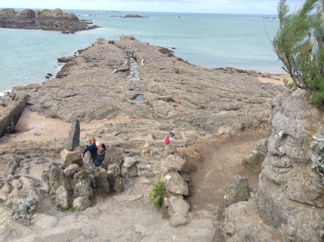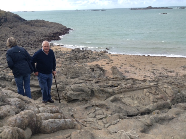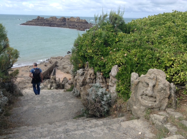 Rock Sculptures at Rotheneuf was our next stop, just minutes further along the coast. We weren’t put off by the sign en-route saying ‘demi-tour difficile camping cars’ as it wasn’t saying camping cars couldn’t go that route. We carried on and found the free parking (suitable for a free overnighter if needs be), paid our 2.5 Euros each and followed the path 2 minutes down to the rocks that overlooked the bay below.