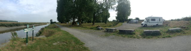A very quiet night and as expected, no one else joined us. This morning a camper van has arrived and the people are getting their bikes out and no doubt ready for the cycle to Mont Saint Michel on the designated cycle track that runs alongside the canal.