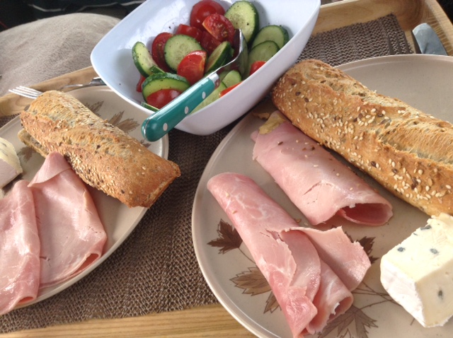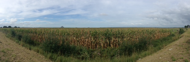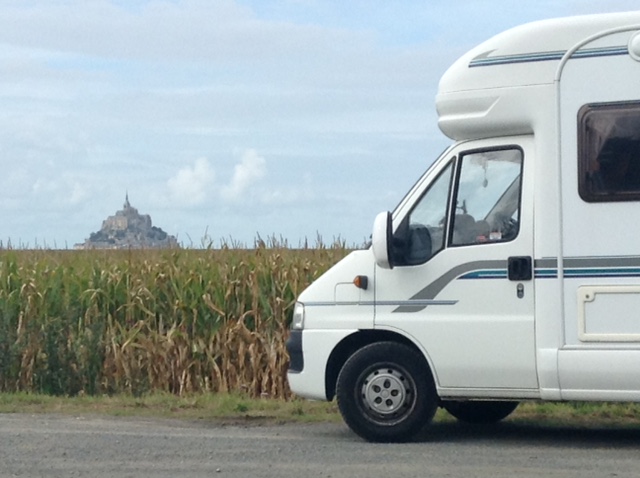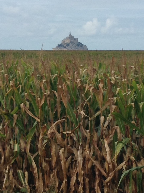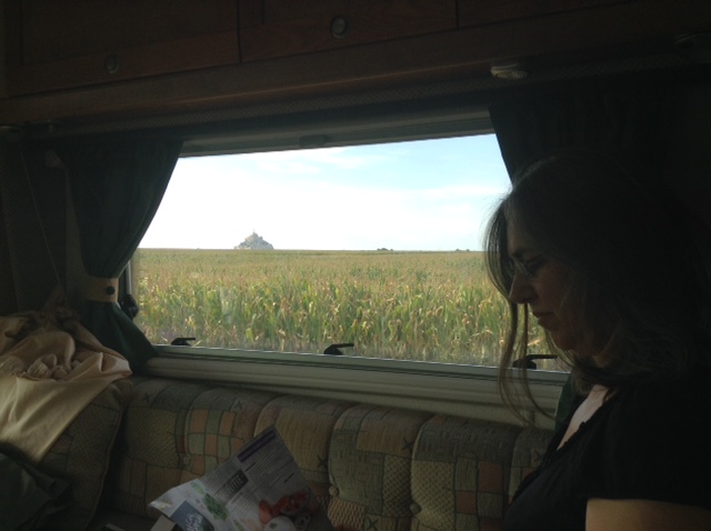 We have pulled up by the side of the road in a designated parking spot for our bread and cheese etc lunch on board overlooking a maize field with Mont Saint Michel in the distance. We have visited it before now, and one day in the future will hook out the photos of that trip and create a belated post!