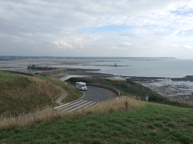 Granville came into view at some point along the way, but only having visited once in our boating days, some years ago now, we could not bypass it, and drove through the seaport town to a stretch of road legitimate to park on, up by the paying aire. The actual aire was 8 euros to overnight and extra for water, but irrelevant to our brief daytime stop. We noticed a footpath behind the police station at the bottom of the hill, and assumed this would lead up to the aire. We tend to find the aires are located pretty conveniently for the town centres. This one not necessarily the most convenient but not out of the way.