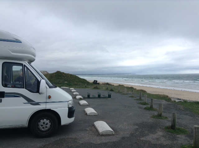 We drove to the beachside car park at Vauville (though no overnight parking allowed) – likely due to the municipal campsite yards away.