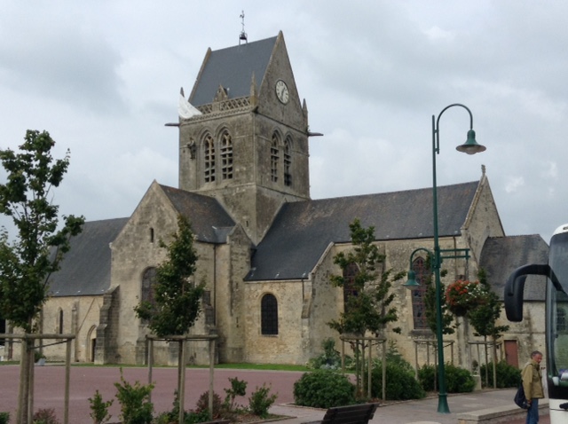 It is famous for the mannequin of the American parachutist left hanging from the church steeple having been unfortunately dropped in the wrong location! Although captured, he survived the war and returned to Saint Mère Eglise many times through his life.