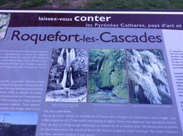 Back on route we then arrived at Roquefort Les Cascades in the hope of seeing the alleged impressive 30m waterfall. After ending up on a progressively narrow track we decided to abandon driving any further & to park next to the water trough in this one horse/donkey hamlet, & to progress on foot. As it turned out, just around the corner from where we’d abandoned our drive there was an easily accessible carpark.