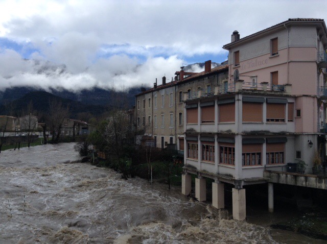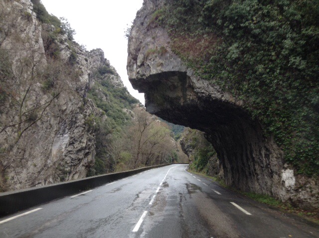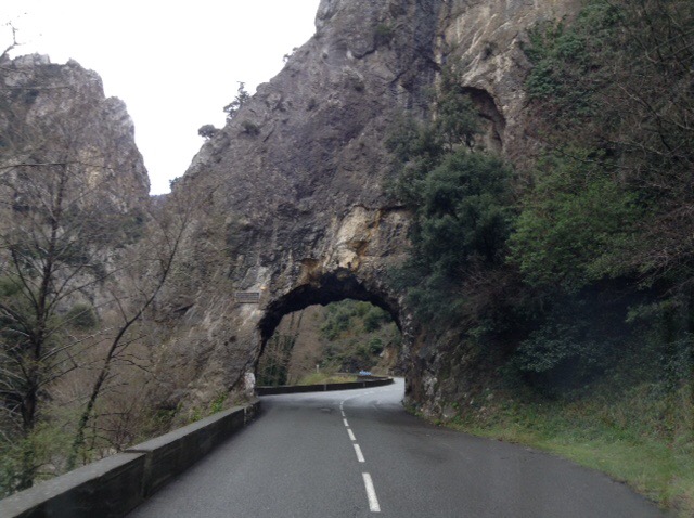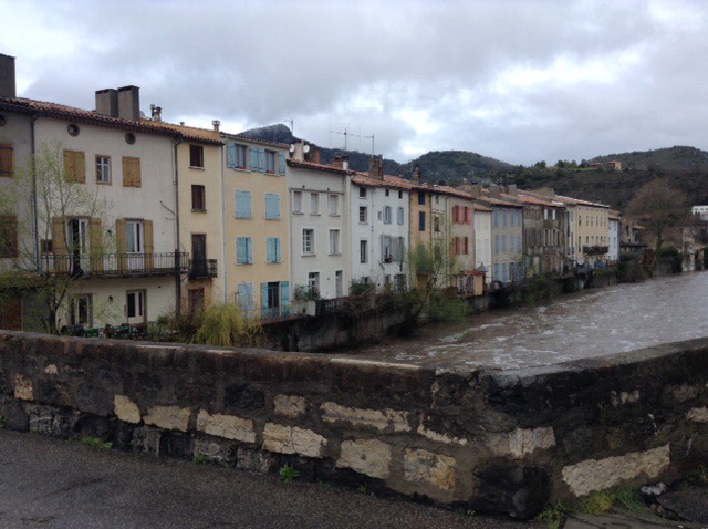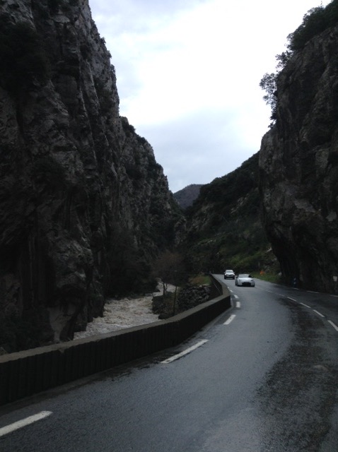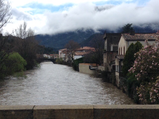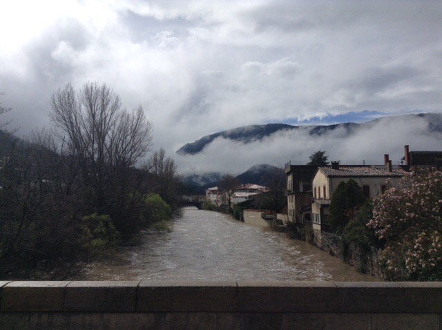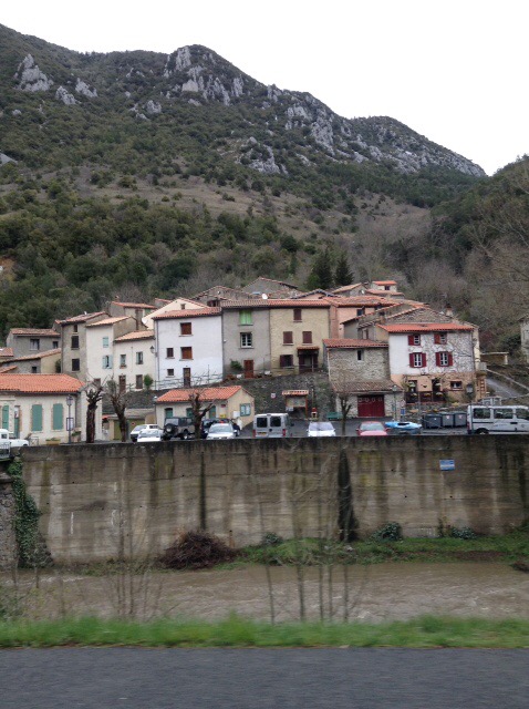 Admittedly we had bypassed a couple of potentially lovely towns previously simply because the inclement weather left us uninspired. The town where we’d just overnighted, Puivert, with its castle was one of those. As we left, we saw the swollen river thundering through and looking very brown from all the churning up that had been going on.