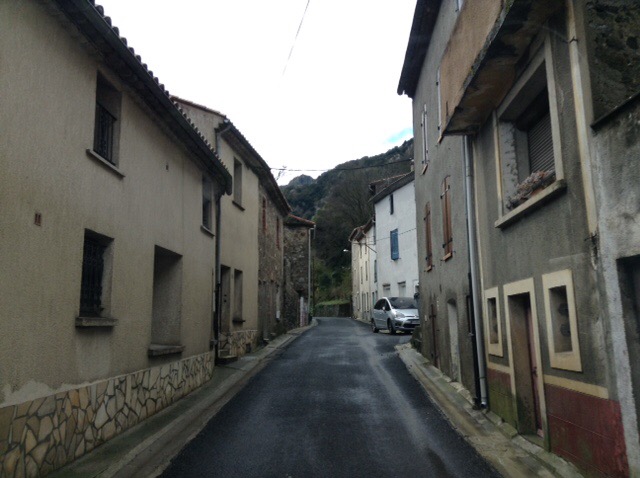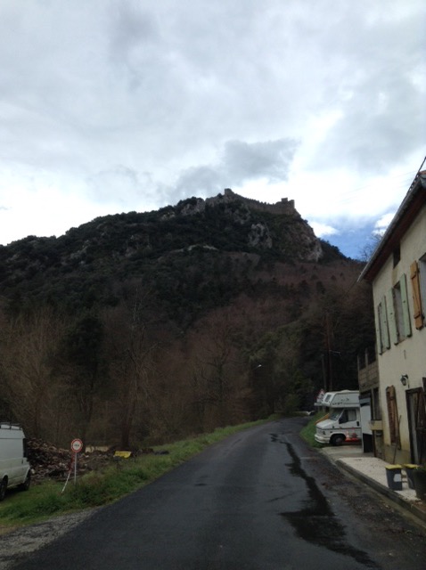We then arrived at Lapradelle which led to the Chateau de Puilaurens. We tentatively took to the narrow route up, took a view that the road was not designed for motorhomes, and then pulled to the side and turned around. Strangely, we changed our minds straight away and continued on up, only to be presented with a 2.9 metre restriction only just round the corner, so this now meant reversing down the road. Anyway, there was a sensible aire in the little town and we topped up our water.
