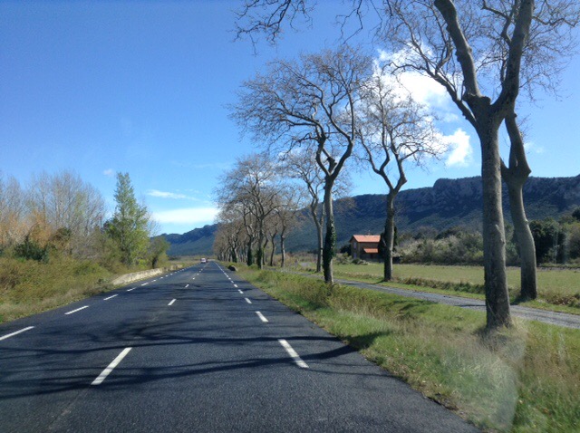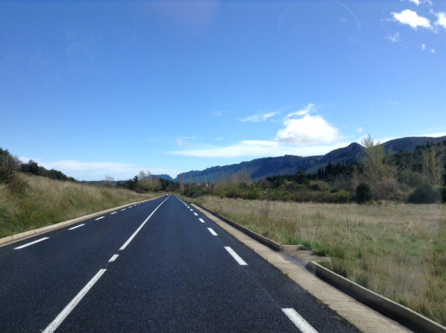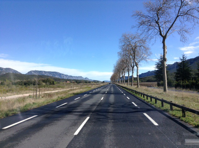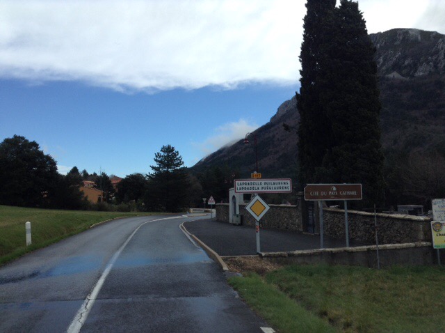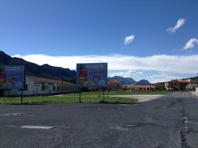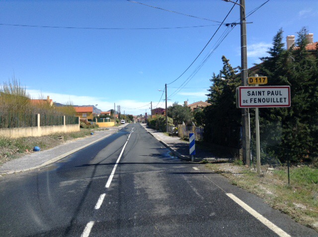 The much-promised Carrefour turned out to be a further 20k even from here, but no worries as it was en route anyway. Somewhere between Lapradelle and St Paul de Fenouillet, the weather seemed to change dramatically, as did the terrain. As the plain opened up with the mountains to the sides, all we could see was blue sky and the temperature reading was suggesting 18C. Bearing in mind it was 3C when we got up this morning that was quite a change.