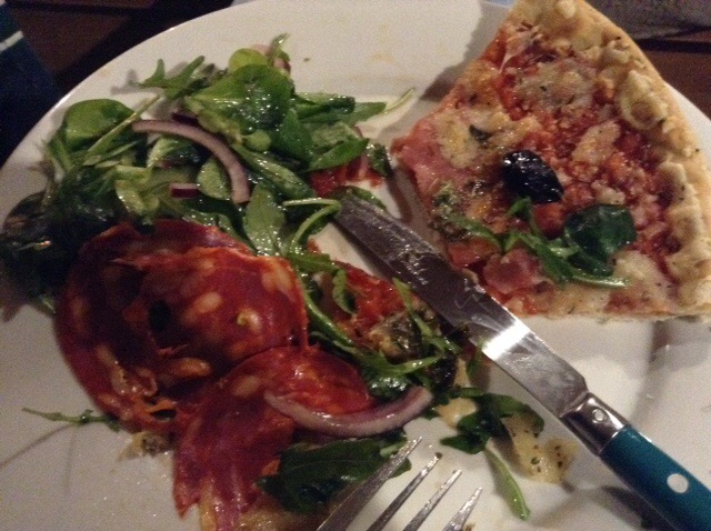 • Shared a pizza with very nice Sophie salad, plus extra chorizo & plenty of Rioja. Other than a few stray hounds running around the car park, and the very bright lights outside, we’re hoping for a long restful sleep
