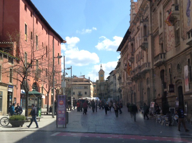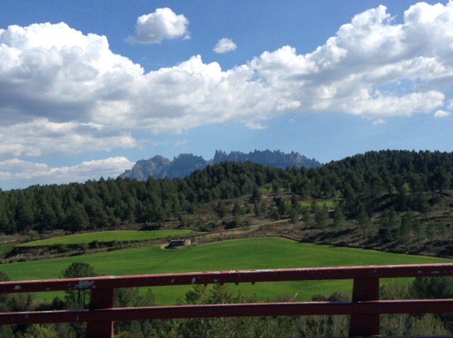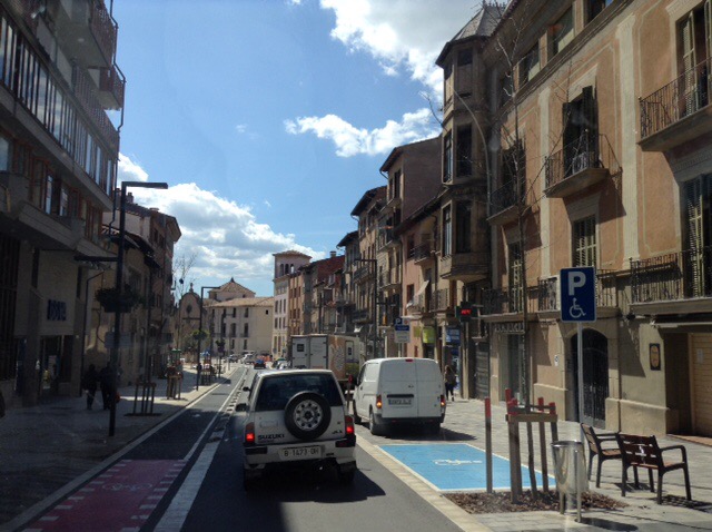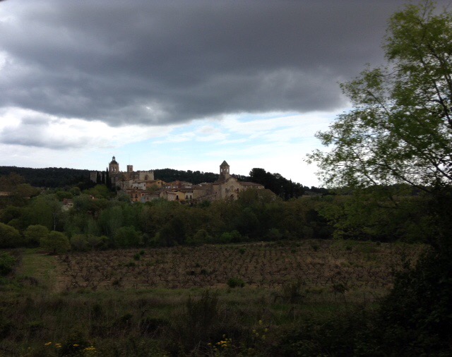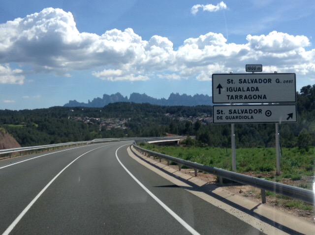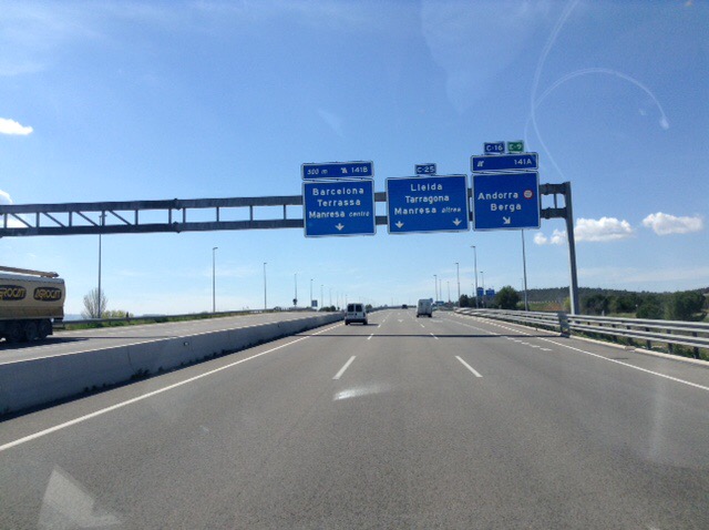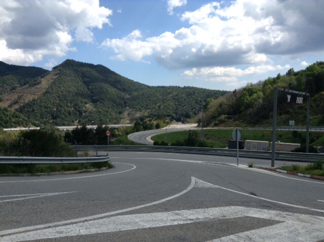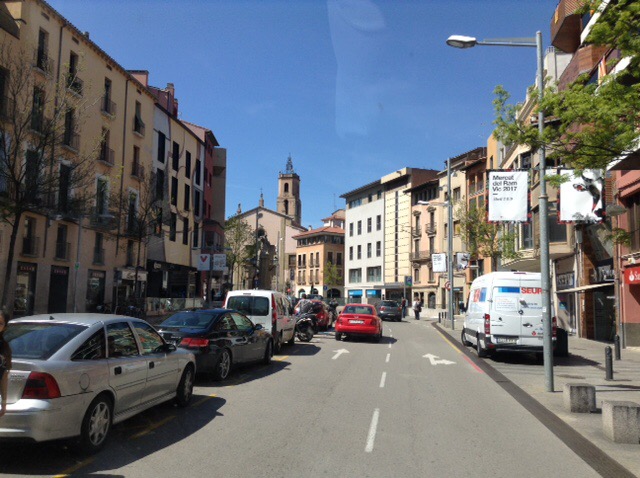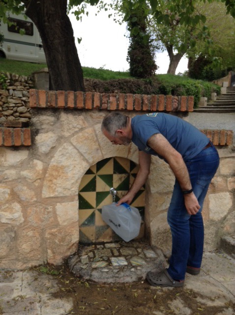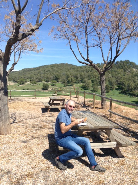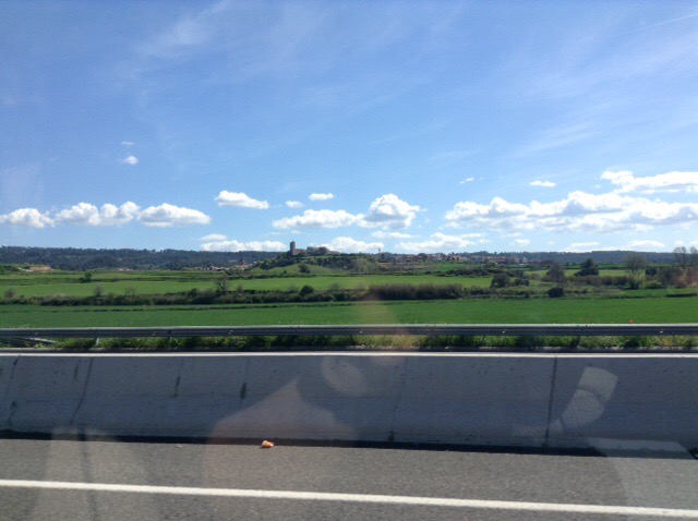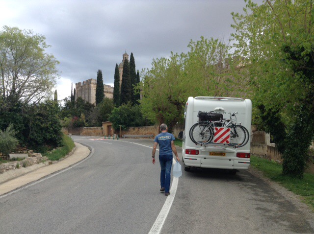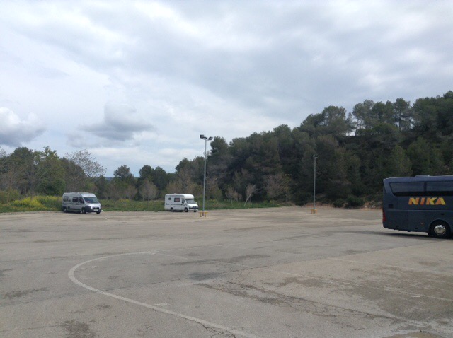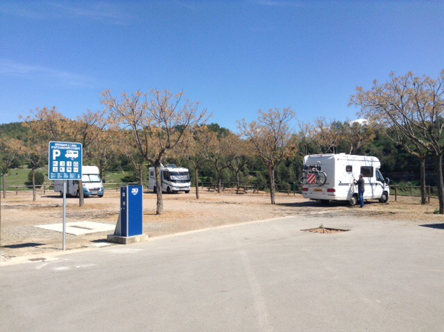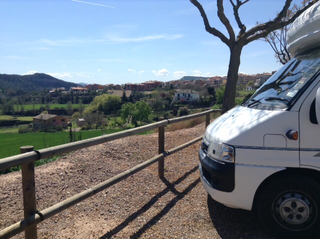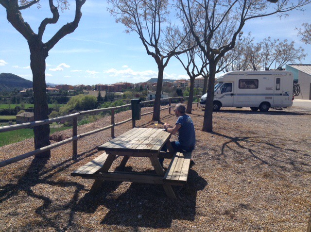 As we motored on along the motorway, we took a little diversion to an aire in a small town called Avinyo. In a country with an apparent lack of decent aires, although we’ve already had some great stops over the last week, Avinyo’s was great. Half a dozen motorhomes would be the limit, but it’s elevated position and great views were excellent. This was our lunch stop and Sophie treated us to day old bread with cheese and tomatoes, but delicious none the less.