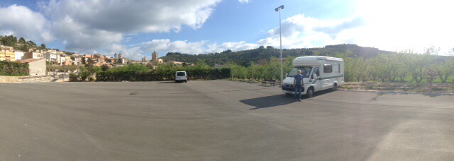 I returned to say that wasn’t this a lovely spot, and Sophie agreed as long as the sports/play area in front of us didn’t turn out to be noisy. I then decided to stroll in the other direction just in case and this is when I discovered a brand new aire, with all the facilities and no other punters, with an incredible aspect and view. Whilst chairs etc aren’t permitted, the good folk of Vallbona de les Monges have provided benches, and this where I’m typing this email, enjoying a beautiful evening as the sun slowly sets, with a glass of Lidl Cava in hand.
