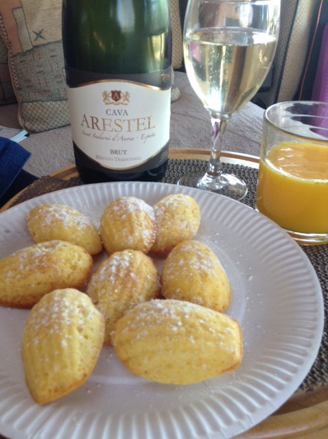 Sophie’s just cooked madeleines, which is code for your bratwurst salad was your main meal of the day matey, but feel free to help yourself to cheese and crackers, and maybe a madeleine or two.