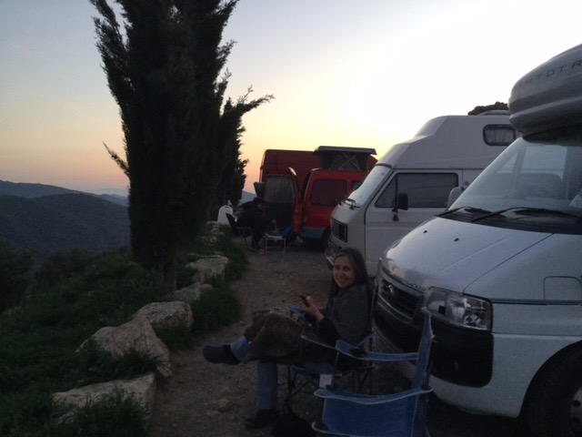 The views are remarkable and the geology/geography spectacular. I’m now running out of superlatives. This is a majorly popular place for rock-climbers from all over Europe. Their common language is English which is handy for us, so we’ve been chatting to a few of them. As I finish this email, we’re sat outside with a bunch of camper vans, and very unusual for us we’re quite content for them to be playing their reggae, and Sophie’s keen to join in & take over a couple of beers later. Whatever next? Let’s see how we feel later when we’re trying to get to sleep.