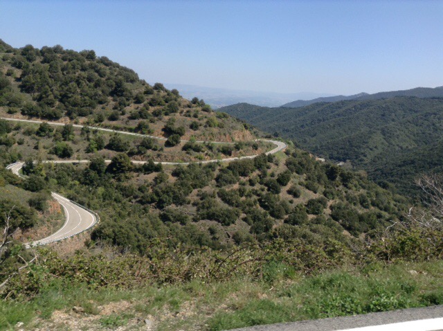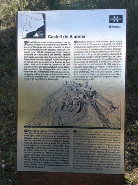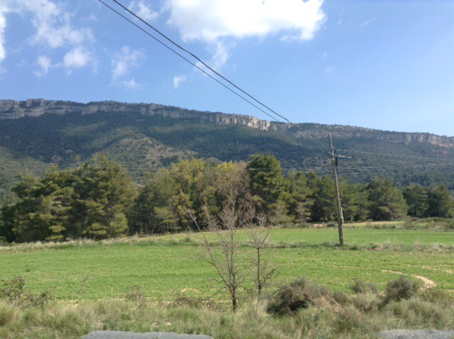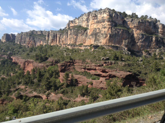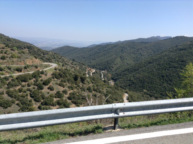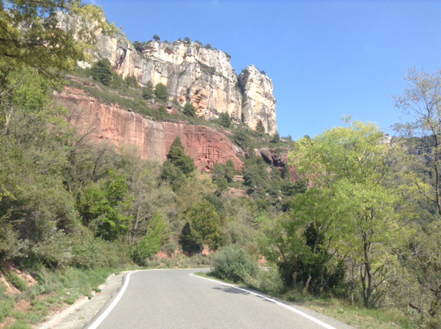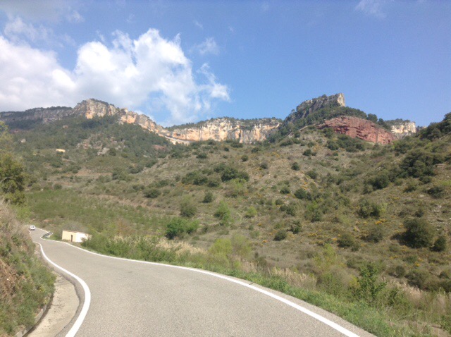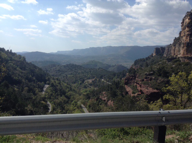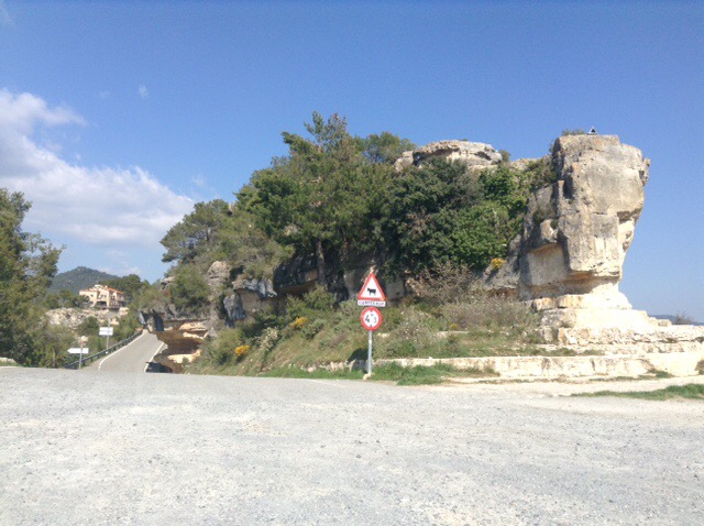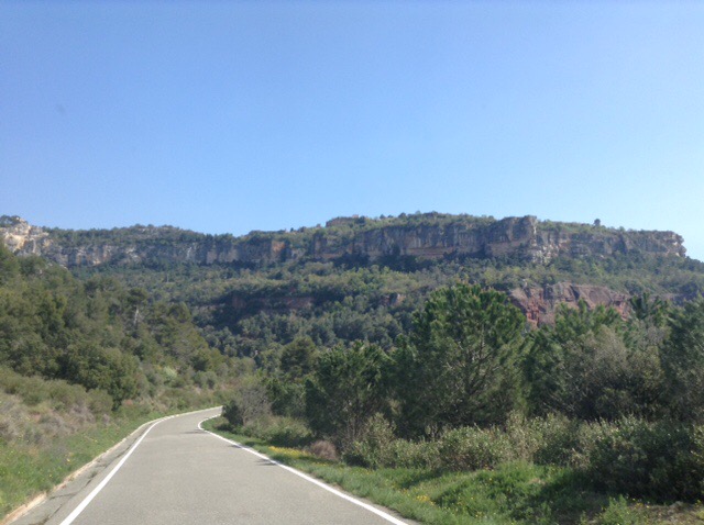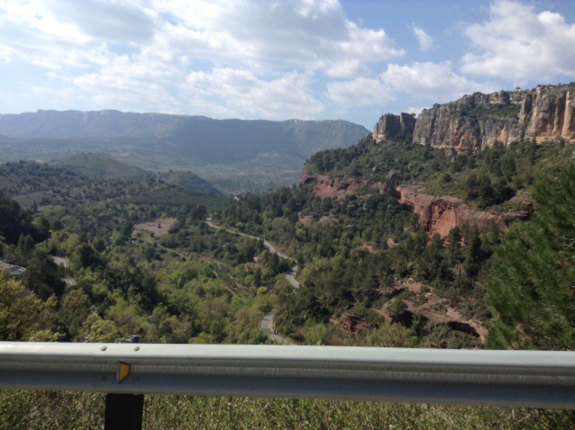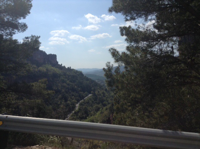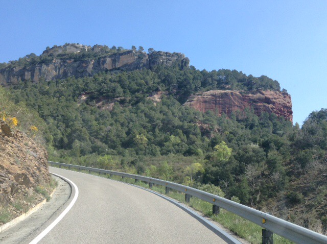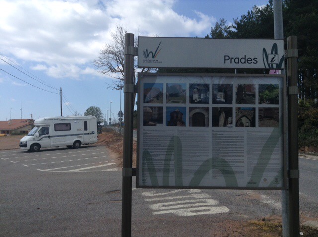 Dorling Kindersley’s “Backroads of Spain” then told us to expect a complete change in terrain as we left en route for Prades. The book was not wrong as we wound torturously up a mountain on a road that was wide enough for a couple of cars to pass, or a motorhome and a car, just. Anyway, we had no one behind us all the way and probably passed one car in a spacious section. Didn’t meet a coach fortunately.