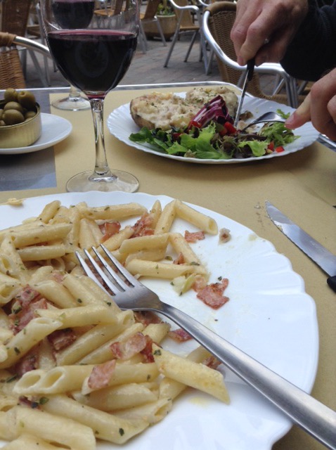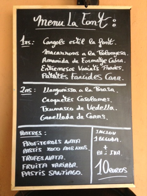 We eventually reached the little town of Prades, which we visited and thought we’d hunt down some fresh bread for a change. Dorling Kindersley recommended a restaurant called L’Estanc, which was not a name that immediately drew us in. Up until now we’ve been spoiled with multi-language menus, although we’d yet to venture into a Spanish restaurant. When faced with a menu in a completely foreign language, and likely Catalan and not even Spanish, then it is a daunting proposal to walk in.