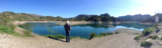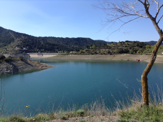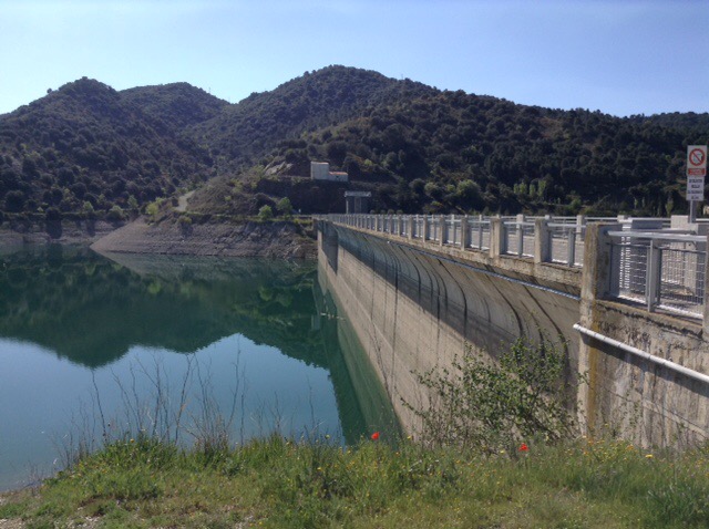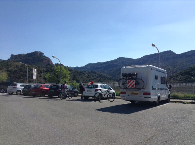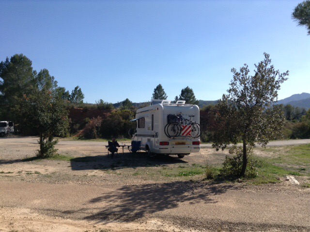 We’d noticed a turning down to the reservoir and headed down there. There was a Park4night here so aimed for that. En route, we noticed several camper vans and reckoned these would be rock-climbers, as we’ve come to learn that this is seen as one of the very best spots for this sport in Europe.