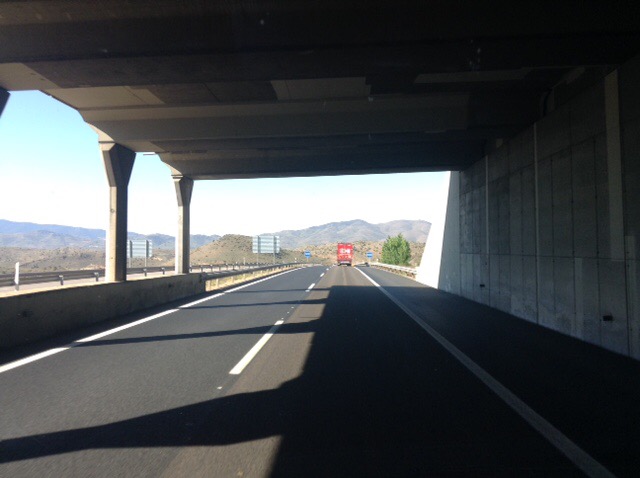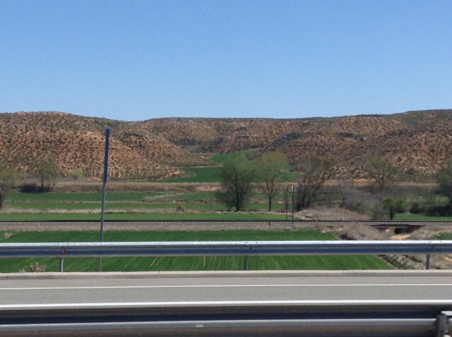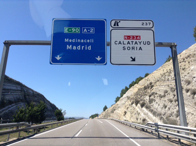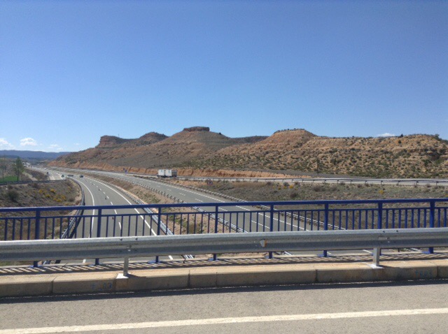 We decided to head out promptly and so continued our journey, mainly West for the moment. Some more rattly roads, but better than yesterday’s, and great and varied scenery along the way. We then found ourselves on some sensible roads, which in turn led to the major Zaragoza to Madrid Autovia.