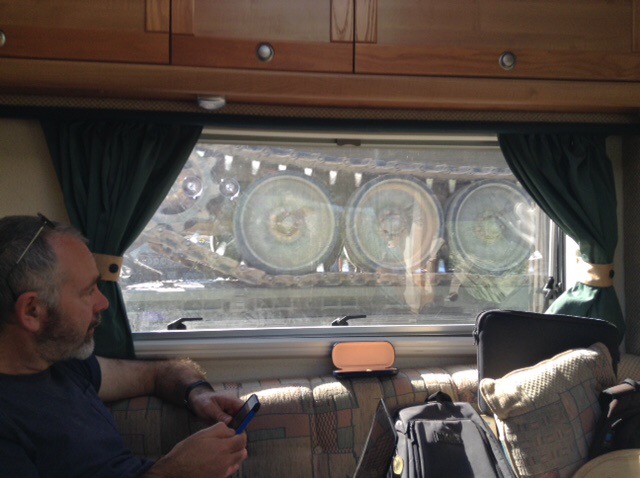 Back on that subject of noise, the van in front was playing some music, but unusually for me the “hard stare” approach actually seemed to have an immediate result, which was handy. Their neighbour had just moved out to the services area behind us and for the 20 minutes or so they took to go through the whole tipping out and topping up routine, they considered it acceptable to also pump out loud music for us all to share.
